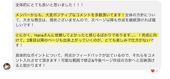 最初の10ページをご提出した段階で、担当者の方からこんな嬉しいお言葉をいただきました。